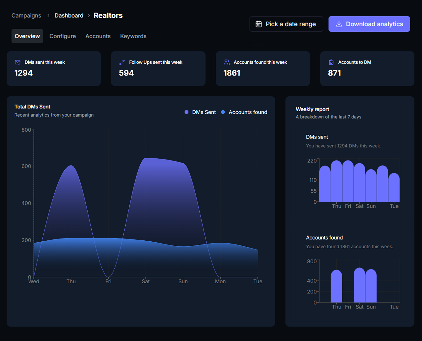 Configure your outreach and our servers will do their thing